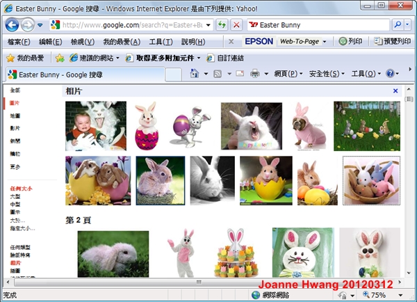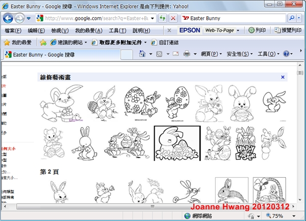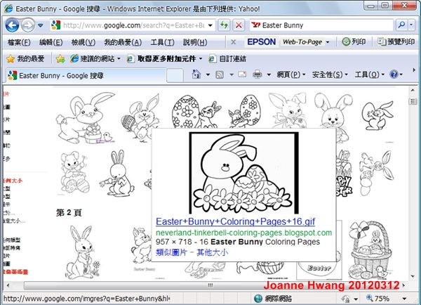 2‧ 選擇上方「圖片」→ 在搜尋欄輸入欲找的圖片名稱(Joanne以Easter Bunny為例) → Enter 搜尋 Go!