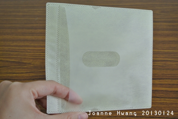 這款CD套有別於市面上常看到的那種喔,仔細觀察,它的袋口比較小,而且因為袋內是不織布材質,和圖片紙張會產生摩擦,比較不會滑出。