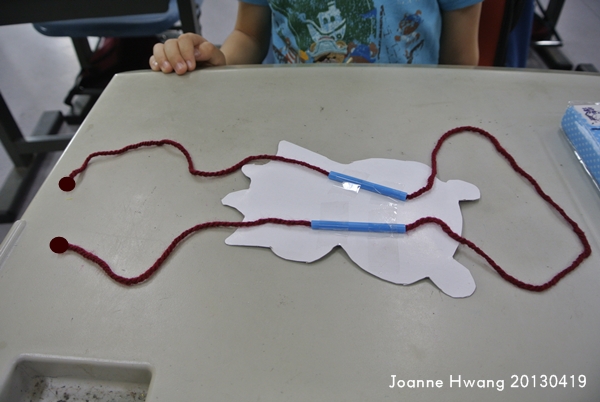 完成囉,接下來就可以玩「飛天鼠」,會跑上跑下喔,請可愛的小朋友來示範!