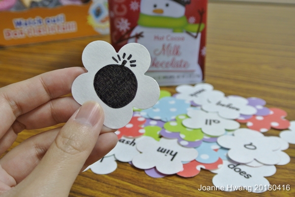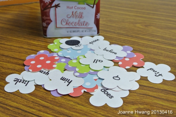 後來,決定搭配之前自製的教具 Pop corn sight words(雪人盒子),很適合。