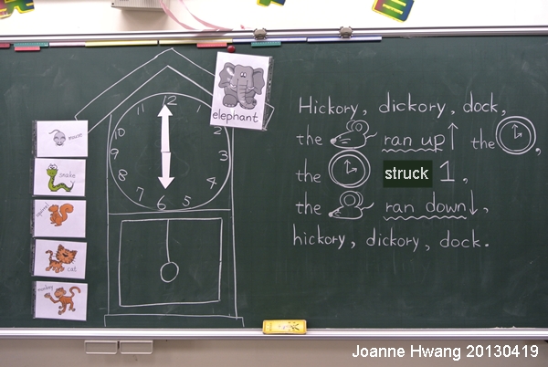 今天帶了低年級小朋友學了這首Hickory Dickory Dock,和小小朋友上課的方法跟中高年級的方法大不同,想把教學步驟做個紀錄。